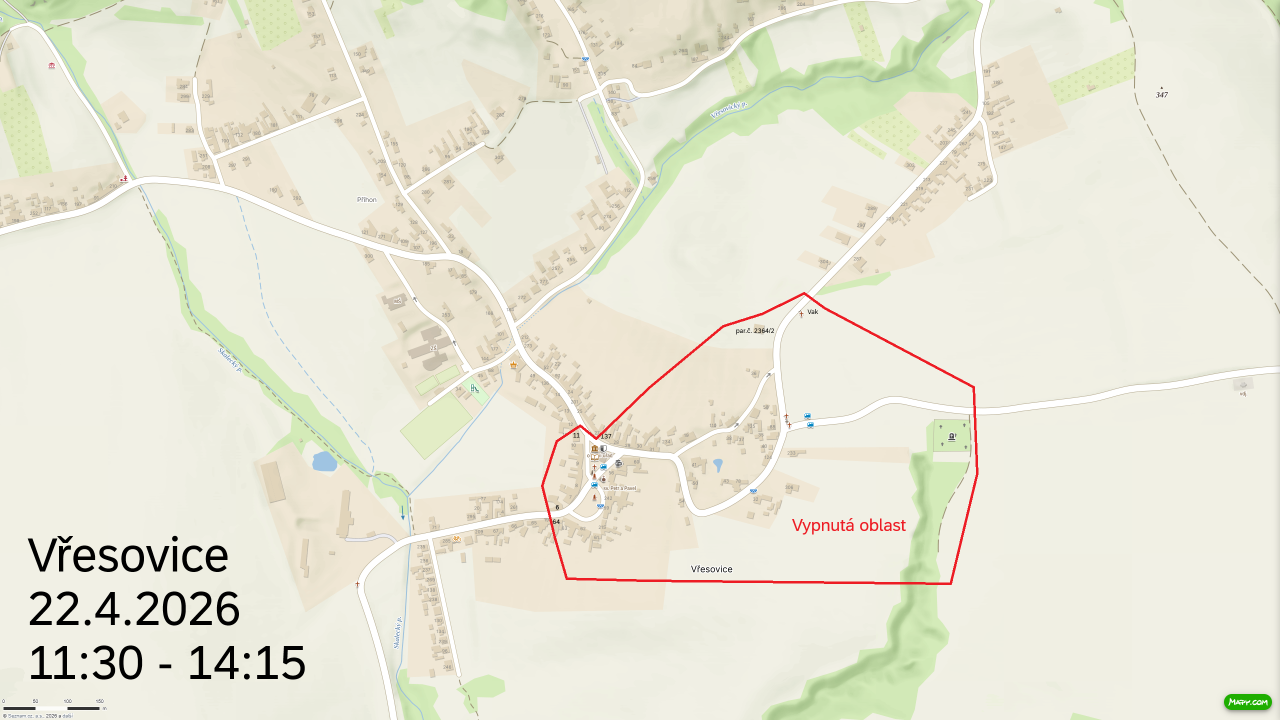 Společnost EG.D, s.r.o. informuje o plánovaném přerušení dodávky elektrické energie v obci z důvodu nezbytných prací na zařízení distribuční soustavy. K odstávce dojde dne 22. dubna 2026 od 11:30 do 14:15 hodin. Dotčená oblast zahrnuje část obce Dědina - OÚ a okolí, park, Malá Palata, Velká Palata, týká se i přečerpávací stanice VAK. Odběratelé jsou žádáni o pochopení a součinnost, včetně umístění oznámení na úřední desku. Během odstávky je nutné považovat energetická zařízení za zařízení pod napětím a případné použití náhradního zdroje je potřeba projednat se společností EG.D.